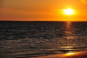 Sonnenuntergang über der Nordsee am Strand in Utersum auf Föhr.
